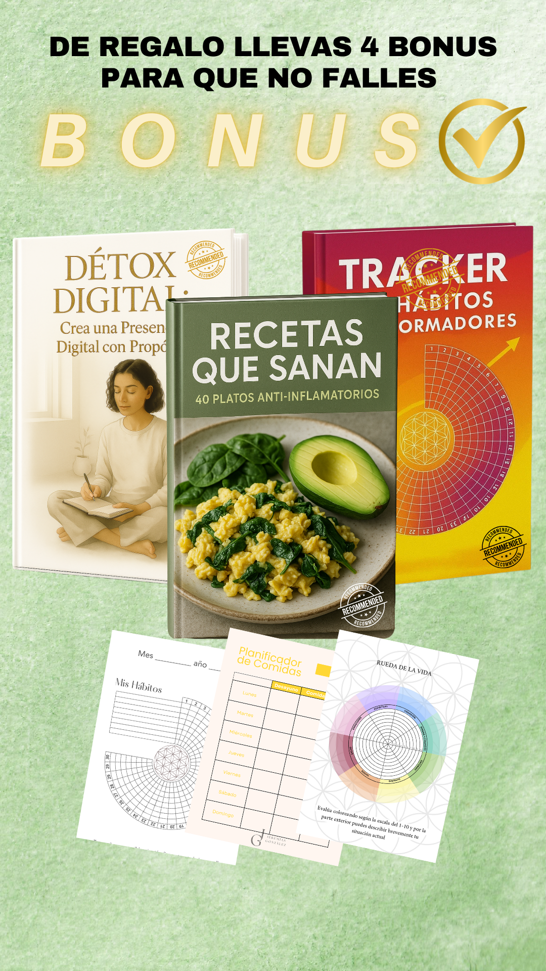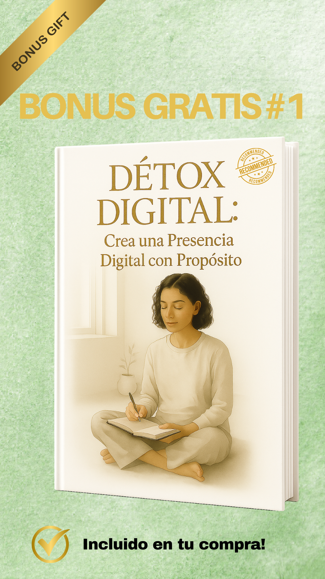 El bono de Détox Digital te enseña a aplicar la claridad y el propósito que logras con el ayuno a tu vida online. Te ayuda a remodelar tu presencia digital para que te sirva a ti, en lugar de ser una fuente de distracción y consumo pasivo. Es el complemento perfecto para evitar que el ruido digital te desconecte de tu propósito.